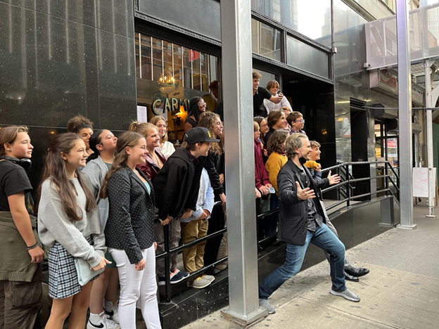 Since there was still time for us to explore before the show, we formed a long line of students and trailed behind Mr. George, like ducklings down the sidewalks of New York City. We oohed and ahhed at the buildings and the shocking number of people amongst us.